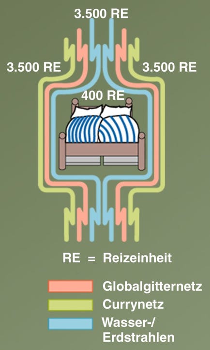 Entscheidend ist hier, dass ein strahlenreduzierter Bereich geschaffen wird, in dem sich der Mensch (400 RE) wohl fühlt. Wobei man erwähnen muss, dass die Strahlungsstärke, gemessen in RE (Reizeinheiten) nicht (!) auf null reduziert werden darf!